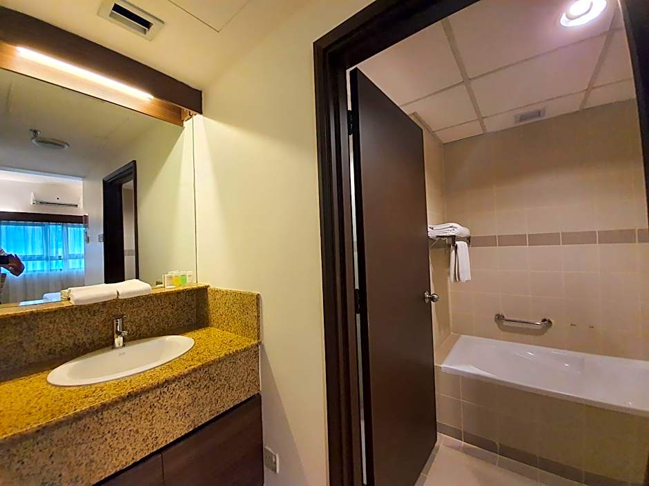 This spacious suite consists of 1 living room, 2 separate bedrooms and 1 bathroom with a walk-in shower and free toiletries. Guests can make meals in the kitchen that is equipped with a refrigerator, kitchenware, a microwave and a toaster. The air-conditioned suite provides a flat-screen TV with cable channels, a seating area, a dining area, a wardrobe as well as city views. The unit offers 2 beds.